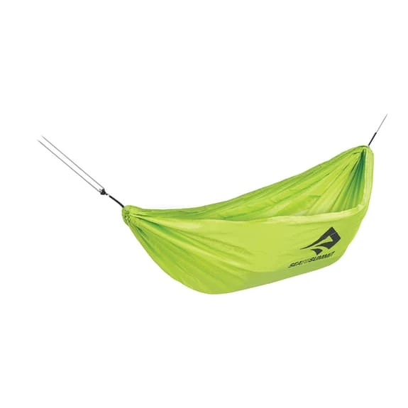 L’amaca Sea to Summit ha un design semplice per essere tenere il tuo zaino lontano dal suolo e avere i tuoi averi a portata di mano. Gode di un sistema di montaggio e di regolazione facile e veloce, con gancio di Nylon, ed include un cordoncino rifrangente per essere visibili nell’oscurità.