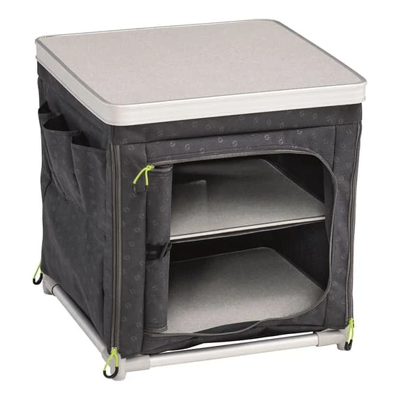 L’armadio pieghevole Outwell Tinos a due ripiani con porta con cerniera di ventilazione in rete ha una porta avvolgibile per un accesso permanente. Si apre e si piega in pochi secondi, ha tre tasche su ciascun lato dell’armadio per piccoli oggetti come chiavi e telefono cellulare e include una borsa per il trasporto per riporlo e trasportarlo facilmente.