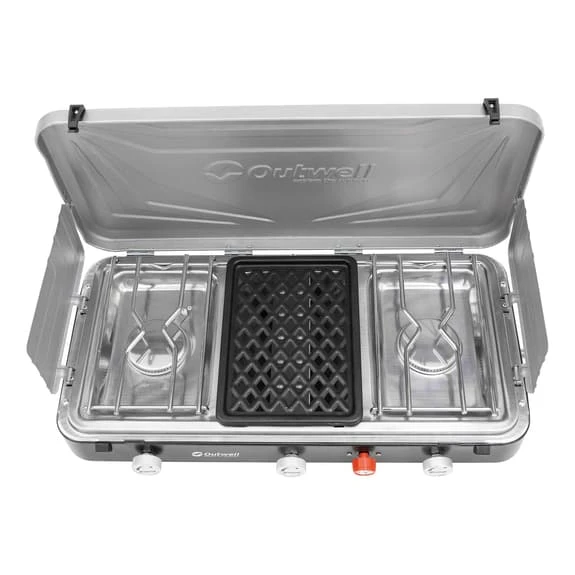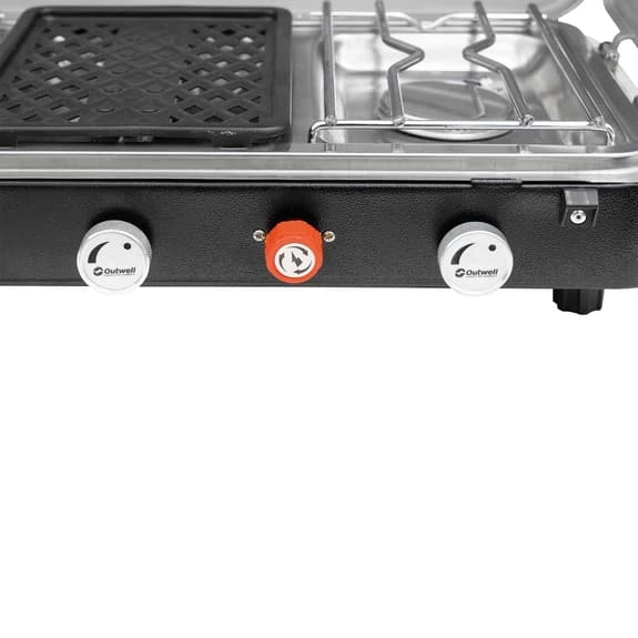 La cucina + grill portatile Outwell Rukutu è dotata di un grill di maggiore potenza, posizionato accanto a due bruciatori per facilitarne l’uso. I controlli individuali del calore assicurano la temperatura perfetta, mentre il vassoio di raccolta in acciaio inox rimovibile e la griglia antiaderente facilitano la pulizia, anche del grasso della pancetta. Ideale per lunghe vacanze in famiglia. Si collega saldamente a una bombola di gas LGP.