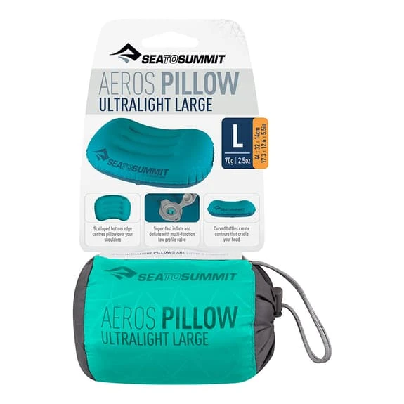 Il cuscino Sea To Summit Aeros Premium Pillow L è progettato per i tuoi viaggi. Ciò che spicca del cuscino da viaggio è la forma ergonomica e le estremità allargate che riducono la necessità di piegare il collo per il sostegno. Inoltre, avvolge il collo per il comfort e aggiunge una cerniera frontale per evitare che cada. La chiusura è realizzata con cura in un tessuto a maglia flessibile e morbido. Presenta tre pulsanti per regolare il cuscino come preferisci. Cuscino estremamente comodo e morbido. Il cuscino Sea To Summit Aeros Premium Traveller Pillow presenta una valvola di gonfiaggio e sgonfiaggio rapido.