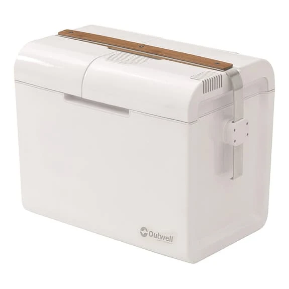 Il frigorifero portatile Outwell Ecolux 24L 12V/230V è tecnicamente avanzato e a risparmio energetico, presenta un attraente aspetto bianco con un impugnatura in bambù e acciaio inossidabile. Include una porta USB e un LED sul coperchio del frigorifero, ed è protetto da una molla in modo che gli ingressi elettronici non vengano danneggiati. Il suo grande interno incorpora un separatore a piastre di ghiaccio per una migliore organizzazione.