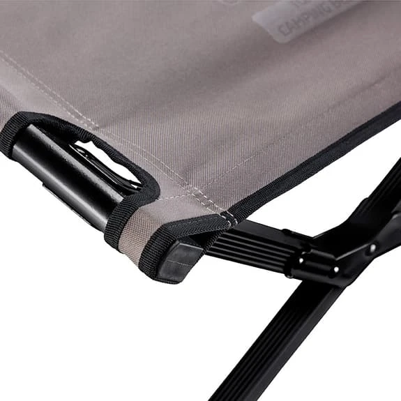 Il letto pieghevole Grand Canyon Topaz M è particolarmente robusto e si compone di una forte struttura in alluminio rinforzato e una finitura in tessuto di durevole poliestere Oxford. A differenza della maggior parte dei letti da campeggio il tessuto superiore si allunga su tutta la superficie del Topaz, così che nessuna barra, sia della testa o dei piedi, ridurrà l’area utilizzabile. Eliminando queste barre, Grand Canyon ha anche ottimizzato il montaggio: devi solo aprirlo e fissare le gambe. Pronto!
