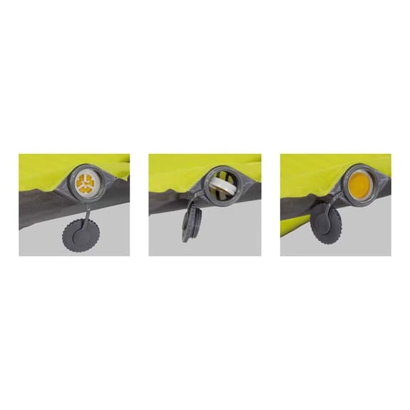è dotato di una valvola a lamelle reversibile di alta qualità a doppia funzione: in modalità di gonfiaggio, la valvola completamente aperta aspira immediatamente l’aria e riempie la schiuma per un utilizzo rapido.