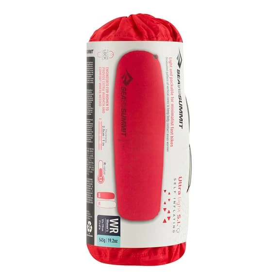 Il materassino Sea To Summit Ultralight R da donna è perfetto per gite di più giorni. Questa gamma Ultralight è la più leggera in modo da poter trasportare il minor peso possibile nello zaino. Lo spessore di questo tappeto è di 2,5 cm e il valore R o resistenza termica è di 2,6. Questa gamma presenta una valvola a doppia posizione, per l’autogonfiaggio e quando si vuole sgonfiare la stessa valvola aiuta perché non entra più aria. Gonfiaggio rapido. Una volta gonfiato, se vuoi che sia più duro, puoi anche gonfiarlo manualmente.