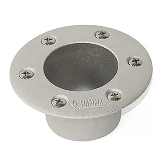 La piastra base ad incasso Fiamma Recessed Connection per le gambe del tavolo Fiamma è una placca base che poggia quasi raso al suolo su cui si può appoggiare la famosa gamba tubolare del tavolo Fiamma. La parte della cavità della piastra di base in cui si trova il tubo è leggermente affusolata per adattarsi alle gambe del tavolo in tubo Fiamma per un’aderenza sicura.