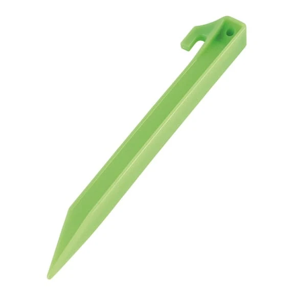 Il picchetto Easy Camp Glow è realizzato in plastica ed è lungo 22,5 cm, include 6 pezzi. Il materiale è fosforescente per essere visibile la notte.