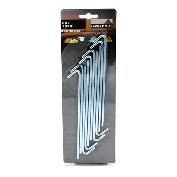 Il picchetto High Peak Stahl Erdnagel è realizzato in acciaio zincato con una punta smussata per terreni duri.