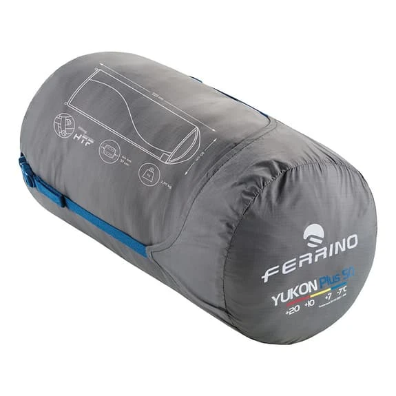 Il sacco a pelo Ferrino Yukon Plus con cerniera a destra ha un’imbottitura H.T.F. (High Thermal Fiber Performance) con alte prestazioni grazie al mix di diverse fibre cave.