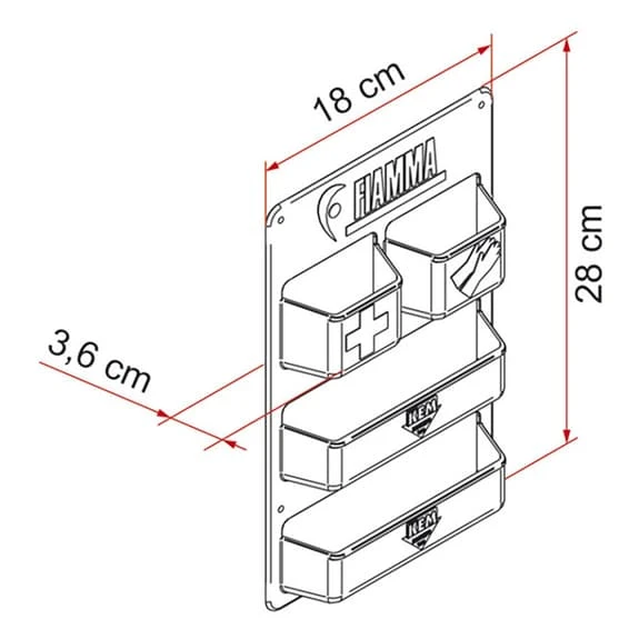 Lo scomparto Fiamma Pocket Kassett è un comodo modulo di quattro tasche portaoggetti singole. Si installa con viti che diventano di serie nella porta del Kasset Thertford o Dometic del veicolo.