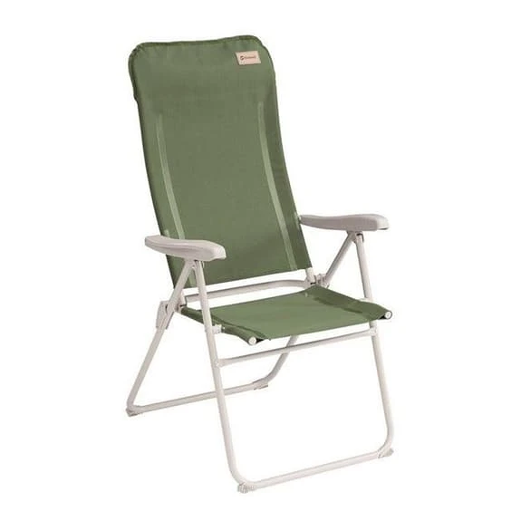 La sedia pieghevole Outwell Cromer presenta un telaio in acciaio resistente e ad alta resistenza, il suo schienale alto e confortevole in schiuma può essere inclinato in 5 posizioni possibili. Il tessuto della sedia è di alta qualità e facile da pulire, integra un cuscino di schiuma modellabile nella zona del collo.