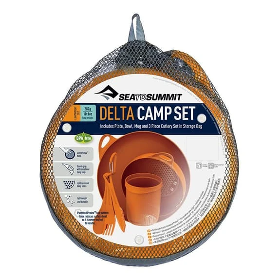 Set da cucina che comprende una scodella, un piatto, una tazza e posate (coltello, forchetta e cucchiaio).