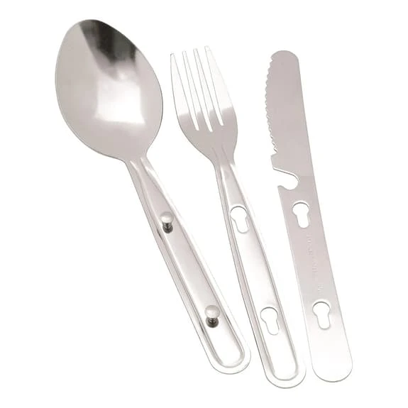 Il set posate Easy Camp Family Cutlery include le posate necessarie per mangiare fuori casa. Presenta forchetta, coltello (apribottiglie) e cucchiaio.