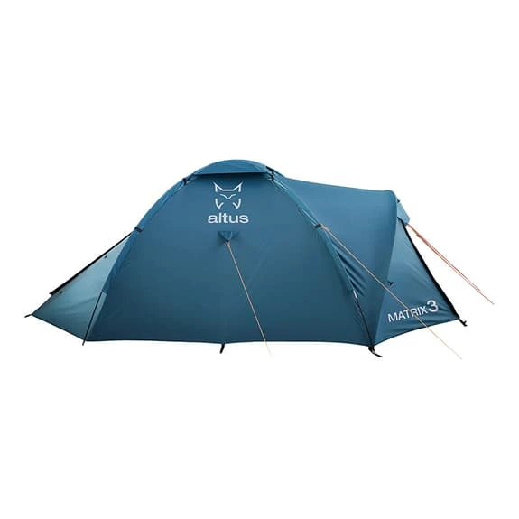 La tenda Altus Matrix 3 è stata progettata come tenda a Igloo a forma di barile incrociato per un massimo di 3 persone. Ha un ampio abside anteriore per il comfort e la larghezza e un abside posteriore per la traspirazione. Il tessuto esterno e il tessuto del pavimento presentano una colonna d’acqua di 3000 mm.