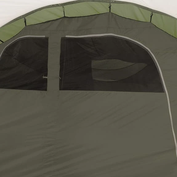La tenda da campeggio Easy Camp Huntsville 500 con spazio per cinque persone, gode di un design con bacchette in fibra di vetro ad angolo che offrono maggior spazio all’interno della tenda per stare in piedi e un ampio salottino con grandi finestre con tendine. La porta frontale principale a rete, a prova d’insetto, insieme al pannello posteriore aumentano. la ventilazione.