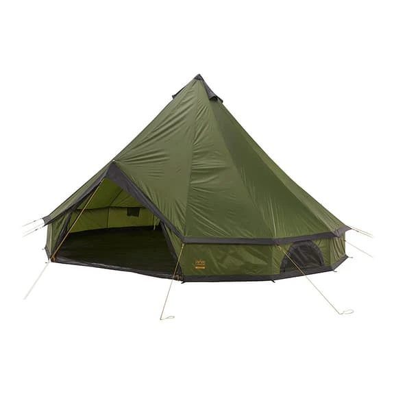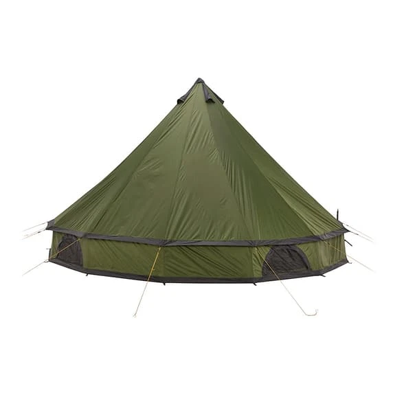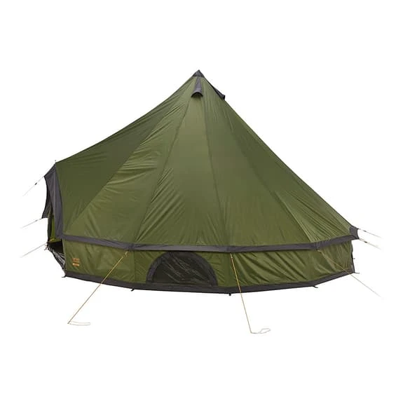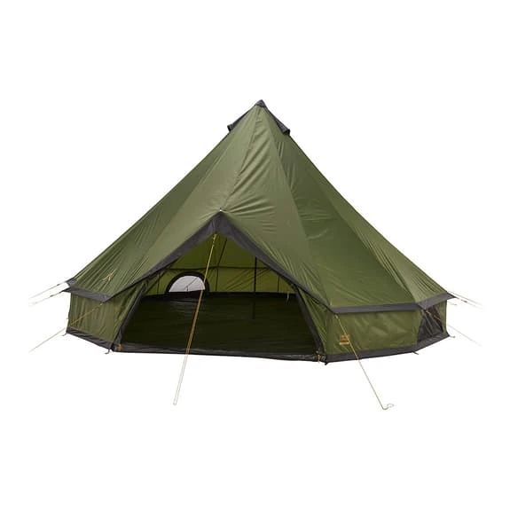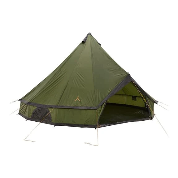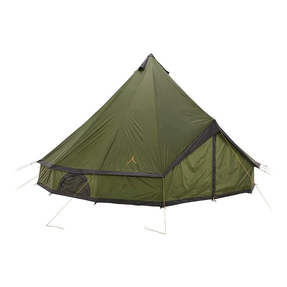 La tenda da campeggio Grand Canyon Indiana 10 è una tipi con un unico albero centrale e una struttura conica già montata che forma una grande entrata. L’interno offre spazio sufficiente che permette a 10 persone di dormire comodamente o un affinché un gruppo ancora più grande possa stare seduto al suo interno durante il giorno. Il suolo tipo vasca da bagno, essendo cucito alla tenda, protegge dagli insetti e garantisce un montaggio semplice. Le grandi tende da sole e le zanzariere sulle finestre del tettuccio assicurano una ventilazione e una temperatura interna ottima in ogni momento.