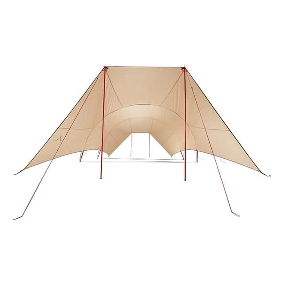 La tettoia Grand Canyon Tahuta Shelter 5 è aperta, disegnata proprio per l’estate in giardino, festival musicali o campeggio. Sotto la sua copertura con fattore 50+ dii protezione contro i raggi UV troverai un sacco di spazio affinché i tuoi familiari, amici e tu potrete sedervi e godere della giornata. La parte centrale ricade su un arco del tunnel, da cui si estende la copertura fino ai due alberi laterali, formando grandi entrate aperte. Il taglio dell’ala favorisce la ventilazione sotto il rifugio, presenta tessuto abbondante e contribuisce all’originale design del Tahuta Shelter 5.