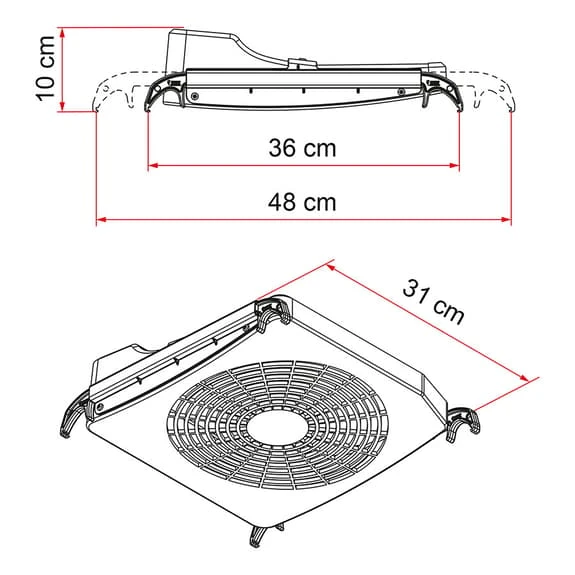 – Può essere installato su lucernari da 40 x 40 (tranne Fiamma) a 50 x 70 cm